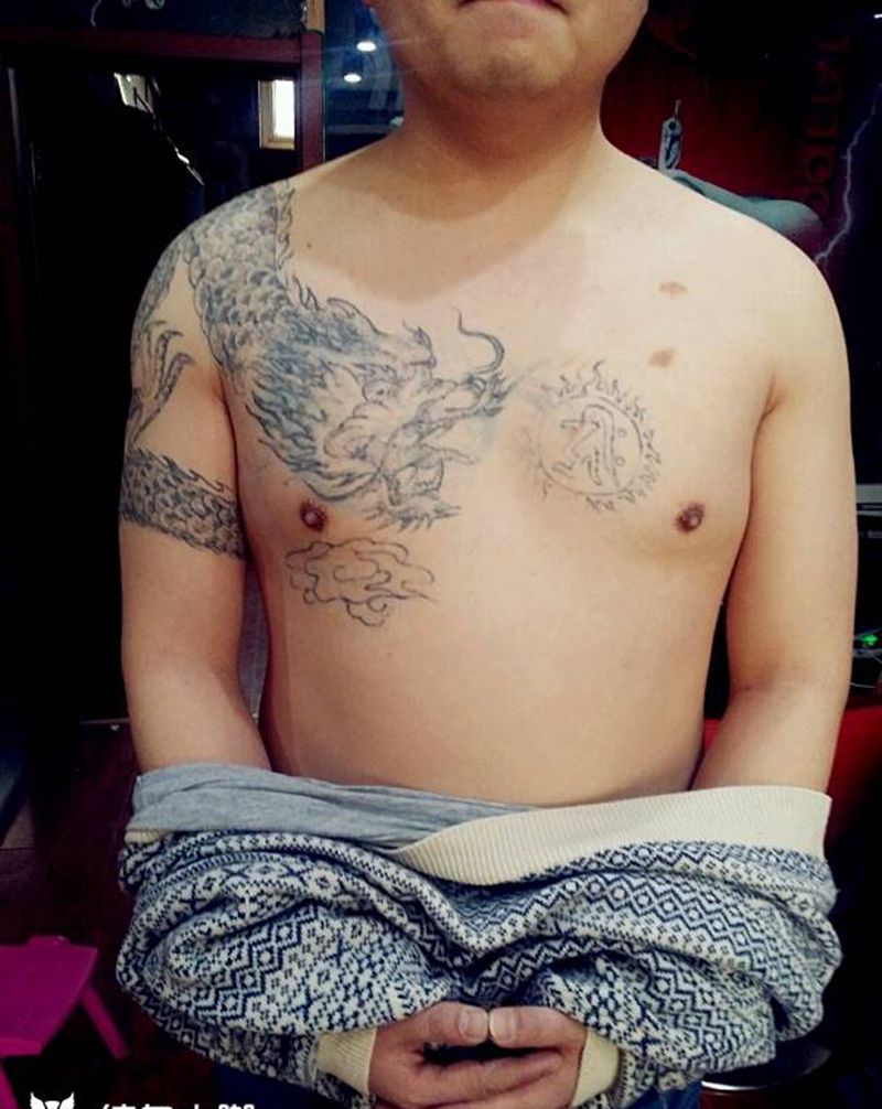 当前位置: 首页 >山东省聊城市纹身店-伍缔堂刺青馆阿涛纹身图案>遮盖大龙纹身图片_肩部胸部传统原创遮盖纹身图案