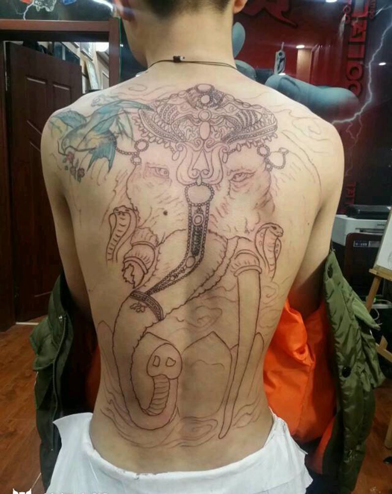 当前位置: 首页 >山东省聊城市纹身店-伍缔堂刺青馆阿涛纹身图案>新年财神到 象神遮盖燕子走起纹身图片_背部传统纹身图案