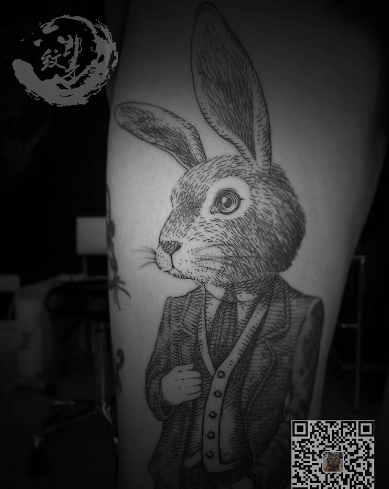 当前位置: 首页 >河南省郑州市纹身店-雲涂刺青纹身图案>兔绅士纹身图片_成品手臂欧美几何动物纹身图案