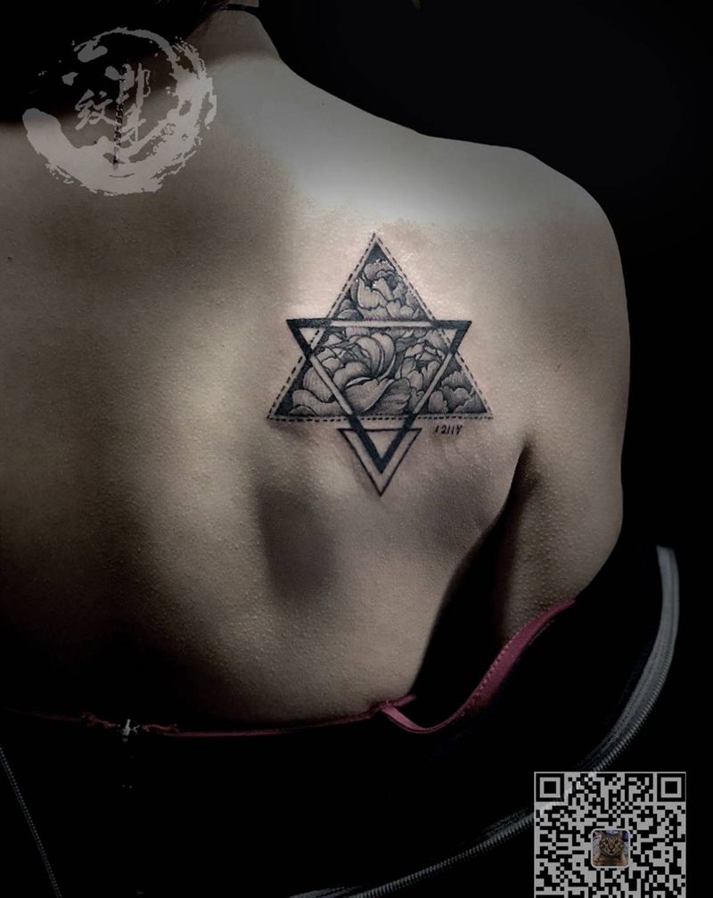 几何点刺花纹身图片_成品原创几何情侣清新背部纹身图案