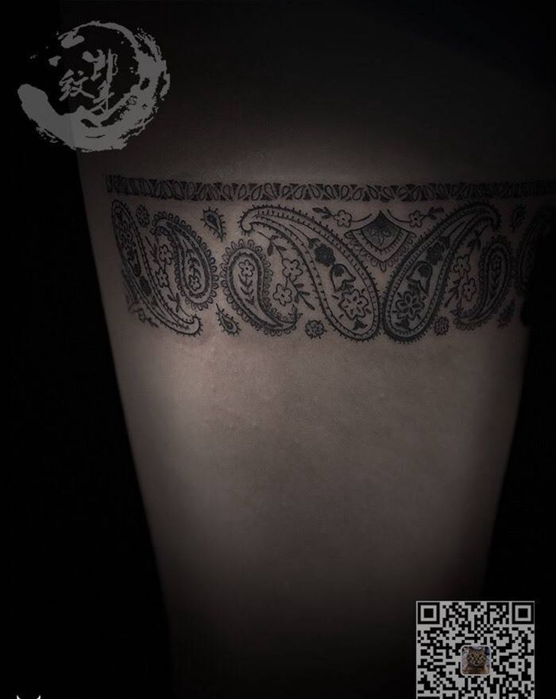 当前位置: 首页 >河南省郑州市纹身店-雲涂刺青纹身图案>腰果花腿环纹身图片_成品手稿腿部清新几何纹身图案