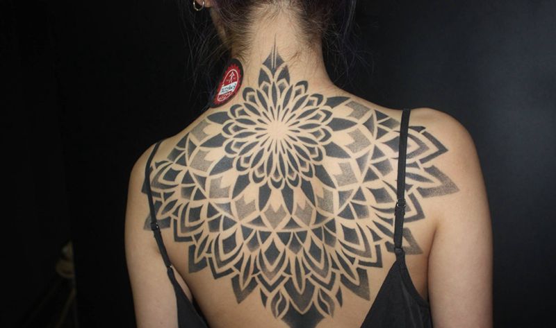 点刺曼陀罗纹身图片_背部点刺纹身图案