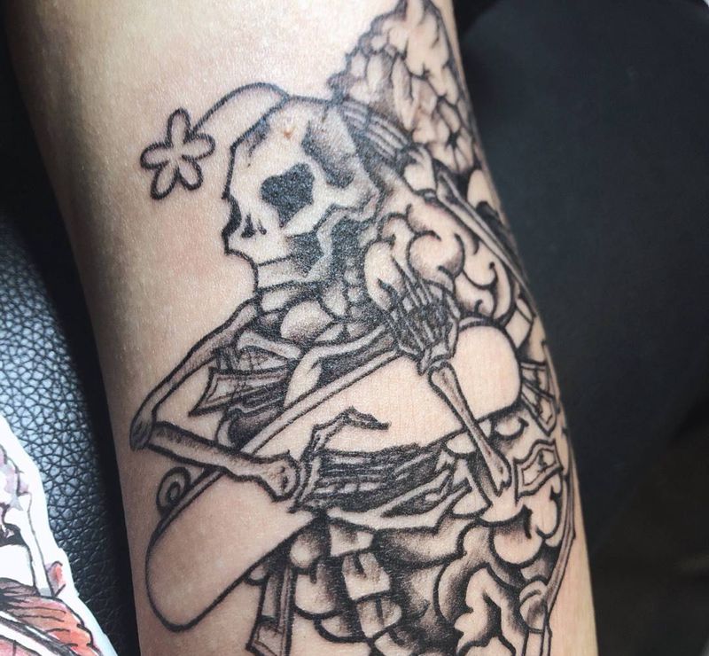 当前位置: 首页 >河南省郑州市纹身店-雲涂刺青纹身图案>滑板骷髅小人儿纹身图片_手臂Old SchoolNew School纹身图案