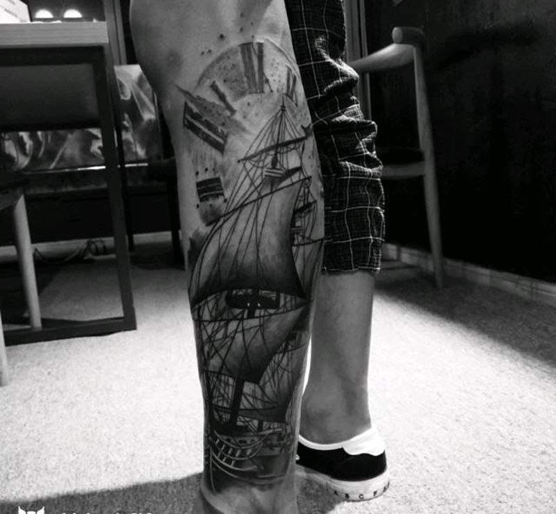 当前位置: 首页 >河南省郑州市纹身店-中辉刺青纹身图案>帆船纹身图片_腿部欧美写实静物成品纹身图案