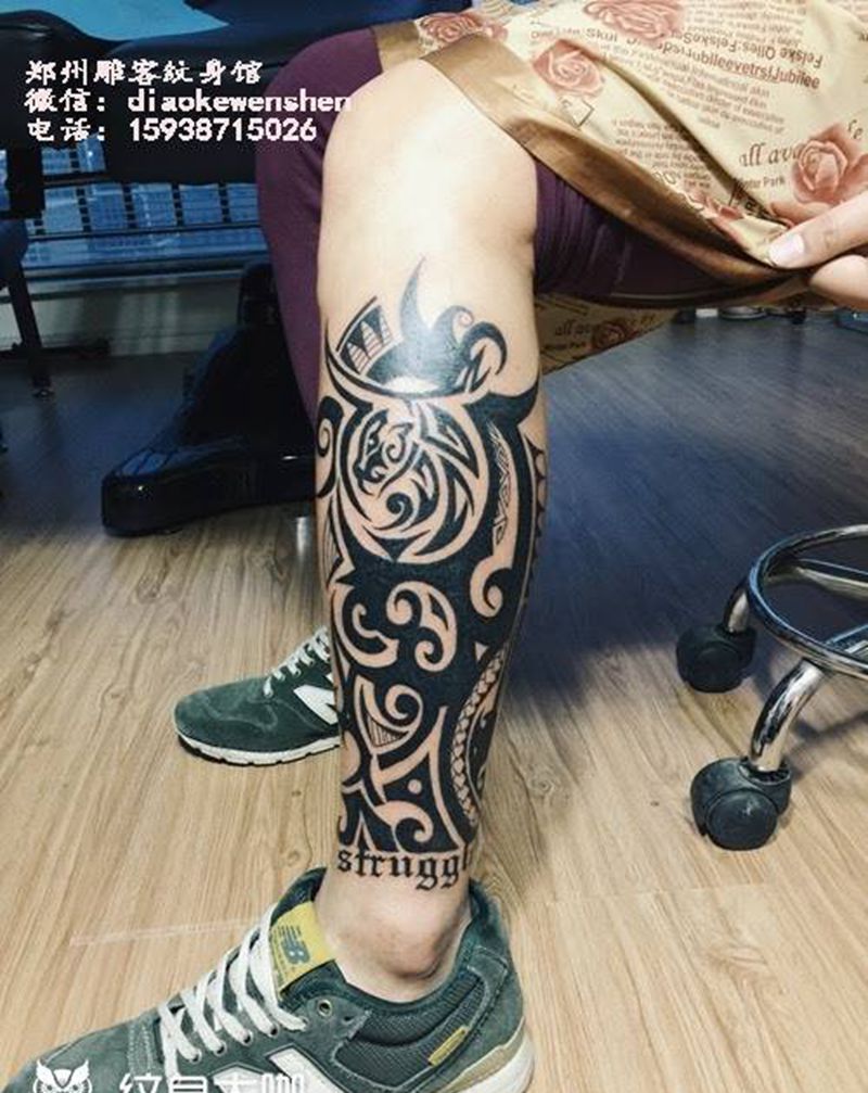 图腾纹身图片_成品腿部传统图腾郑州纹身图案