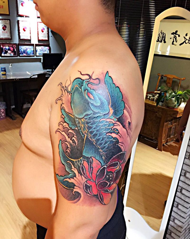 当前位置: 首页 >河南省郑州市纹身店-郑州雕客纹身馆纹身图案>招财鱼纹身图片_成品手臂传统动物郑州培训纹身图案