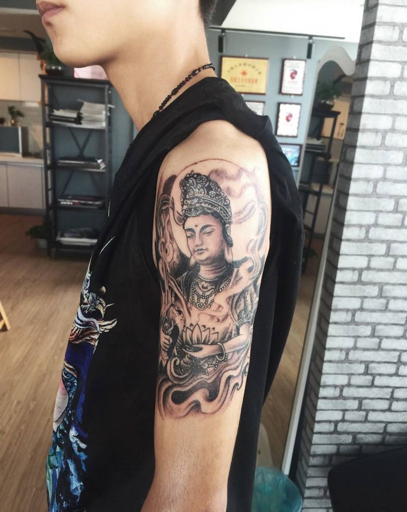 虚空藏菩萨纹身图片_成品手臂传统人物郑州培训纹身图案