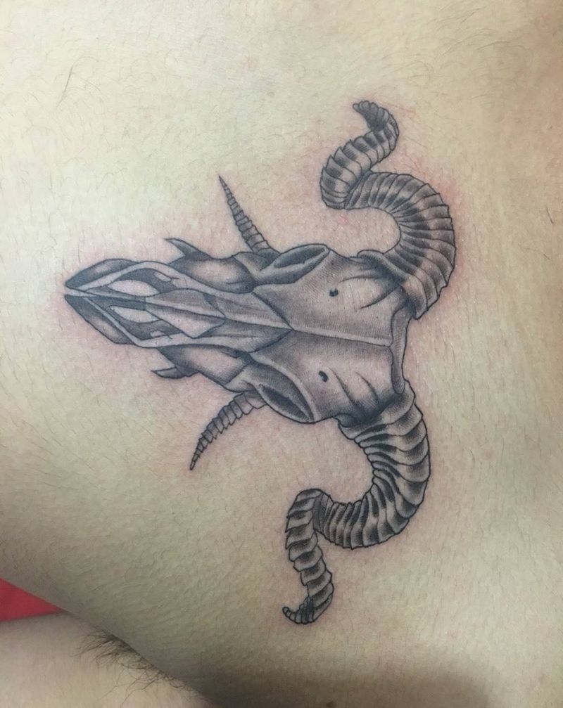 当前位置: 首页 >河南省郑州市纹身店-郑州瑞 刺青纹身图案>羊头纹身图片