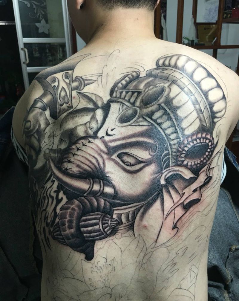 当前位置: 首页 >河南省郑州市纹身店-郑州瑞 刺青纹身图案>象神全部完成了!纹身图片