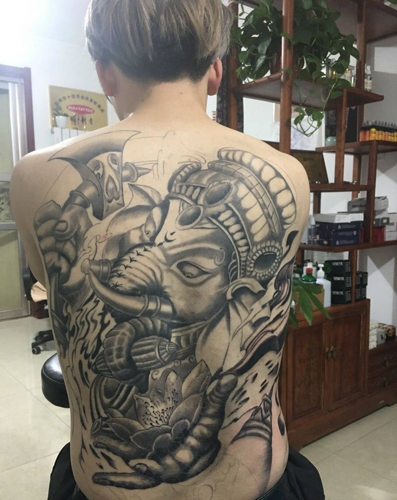 当前位置: 首页 >河南省郑州市纹身店-郑州瑞 刺青纹身图案>象神全部完成了!纹身图片