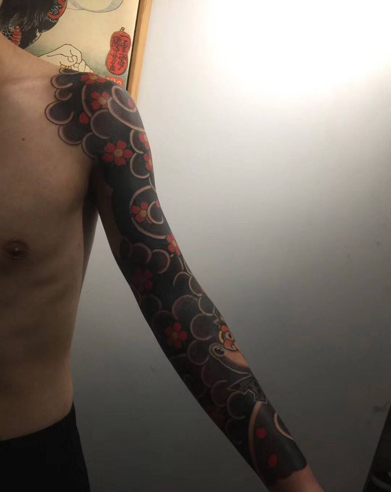 当前位置: 首页 >河南省郑州市纹身店-鬼骨studio纹身图案>樱花火男花臂纹身图片_手臂老传统花臂纹身图案