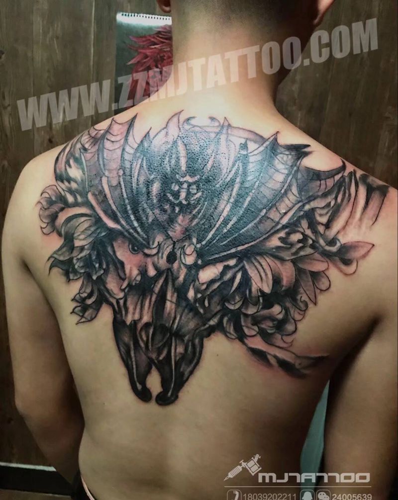 黑灰满背纹身图案