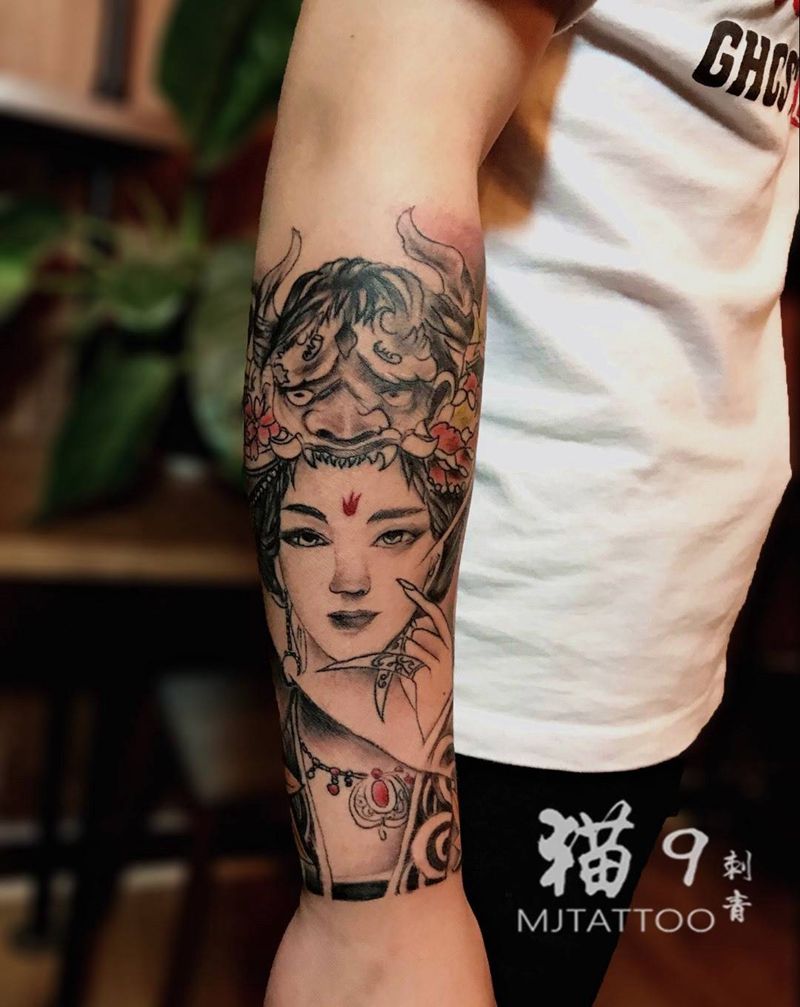 当前位置: 首页 >河南省郑州市纹身店-郑州猫9刺青纹身工作室纹身图案>新传统艺妓纹身图片