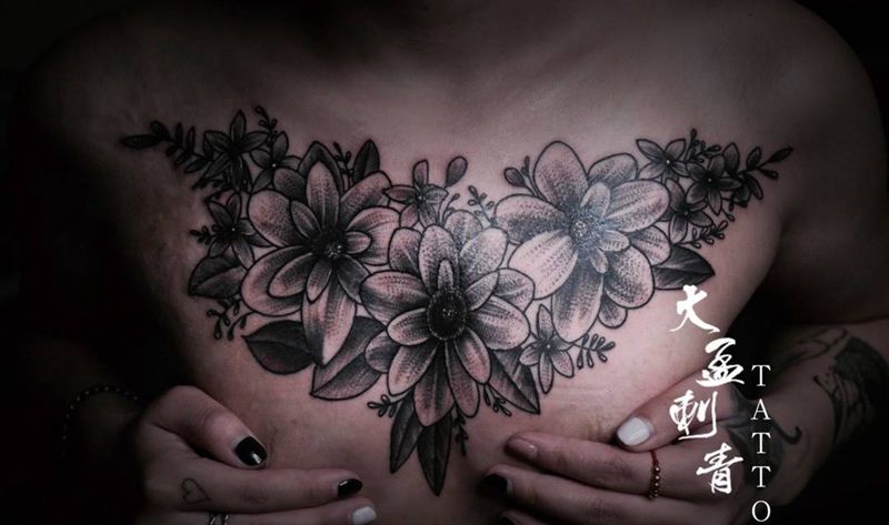 • 女性大花胸纹身_43张霸气漂亮的女性大花胸纹身图案作品