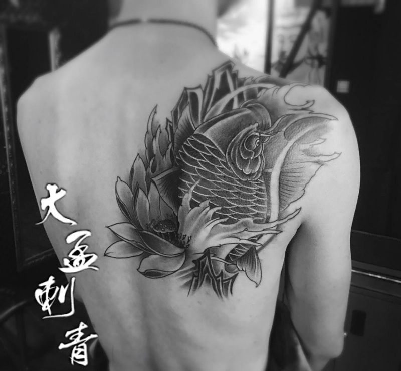鲤鱼遮盖失败图腾纹身图片_成品肩部传统原创纹身图案