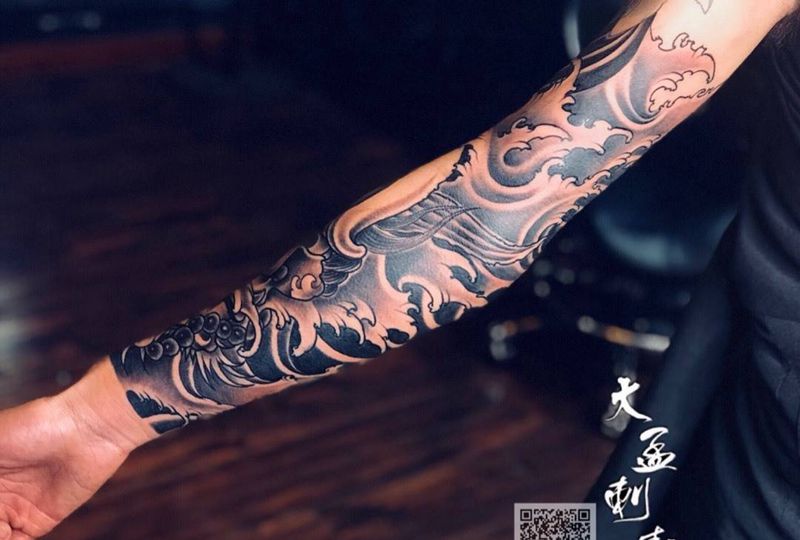 当前位置: 首页 >河南省郑州市纹身店-大孟刺青工作室纹身图案>般若水浪花臂纹身图片_成品原创纹身图案