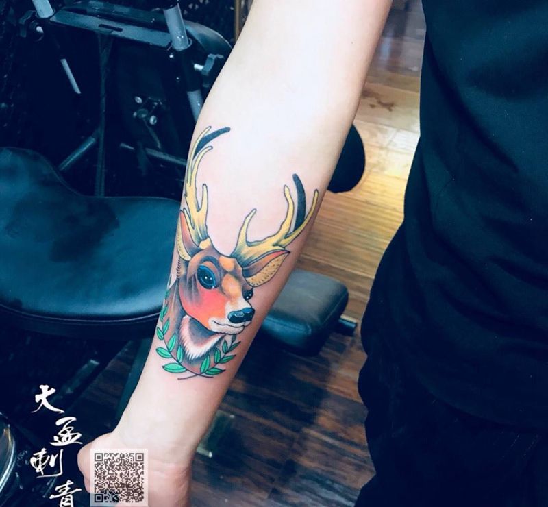 当前位置: 首页 >河南省郑州市纹身店-大孟刺青工作室纹身图案>彩色麋鹿纹身图片