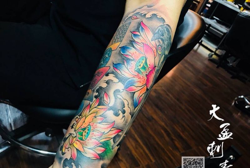 当前位置: 首页 >河南省郑州市纹身店-大孟刺青工作室纹身图案>彩色包小臂纹身图片_成品原创纹身图案