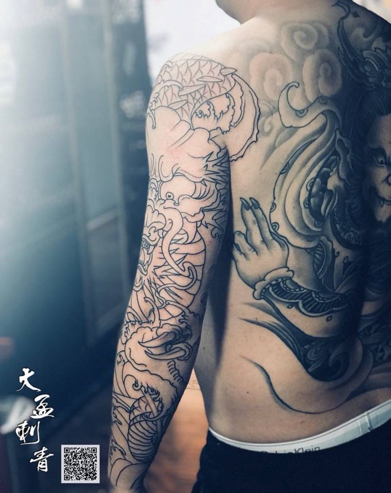当前位置: 首页 >河南省郑州市纹身店-大孟刺青工作室纹身图案>花臂龙遮盖半成品纹身图片_成品原创传统纹身图案