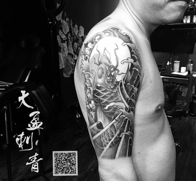 当前位置: 首页 >河南省郑州市纹身店-大孟刺青工作室纹身图案>大臂鲤鱼纹身图片_手臂新传统纹身图案