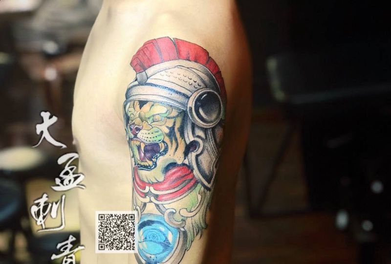 当前位置: 首页 >河南省郑州市纹身店-大孟刺青工作室纹身图案>欧美老虎纹身图片_手臂New School纹身图案