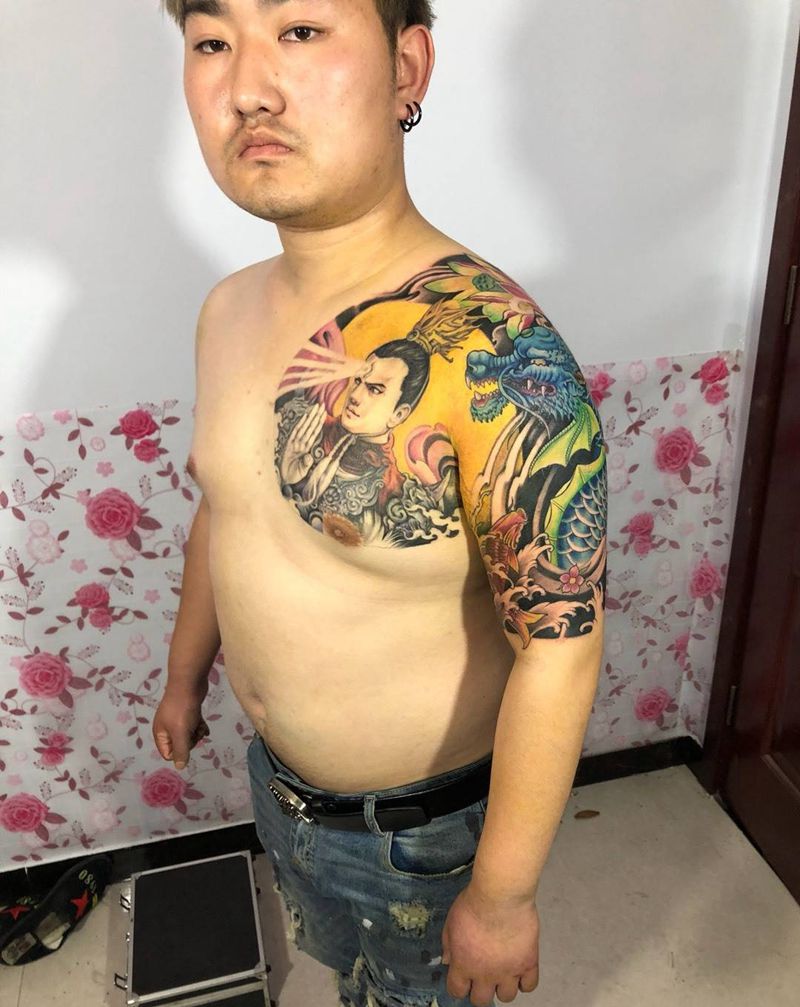 当前位置: 首页 >河南省郑州市纹身店-森Tattoo纹身图案>二郎神大战鳌鱼纹身图片
