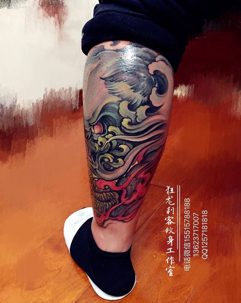 • T网红王老大花腿龙纹身图片_腿部新传统纹身图案