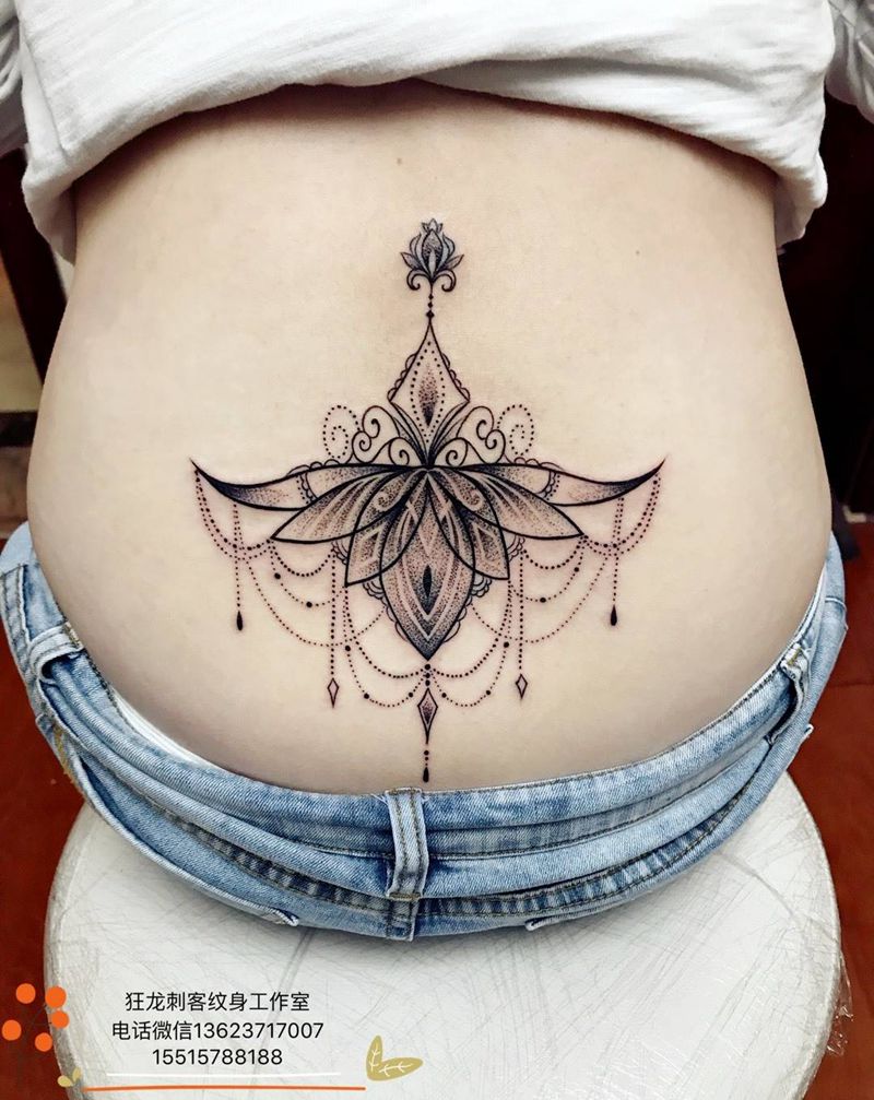 • 时尚性感的腹部莲花纹身图案