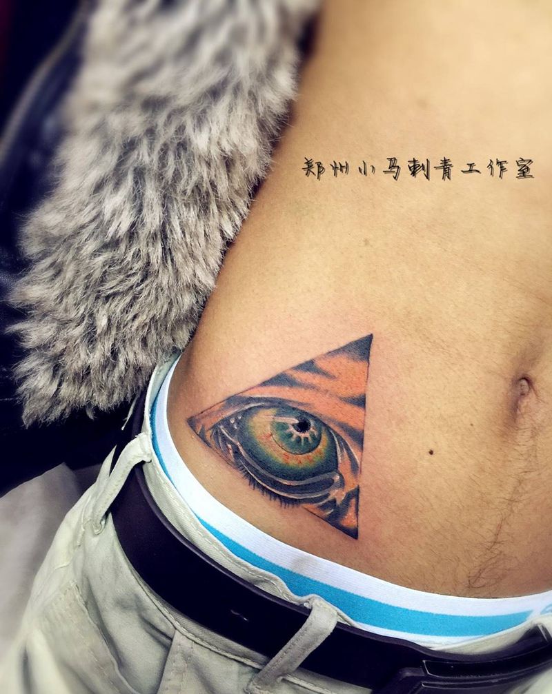当前位置: 首页 >河南省郑州市纹身店-小马刺青纹身工作室纹身图案>眼纹身图片_成品腹部写实动物纹身图案