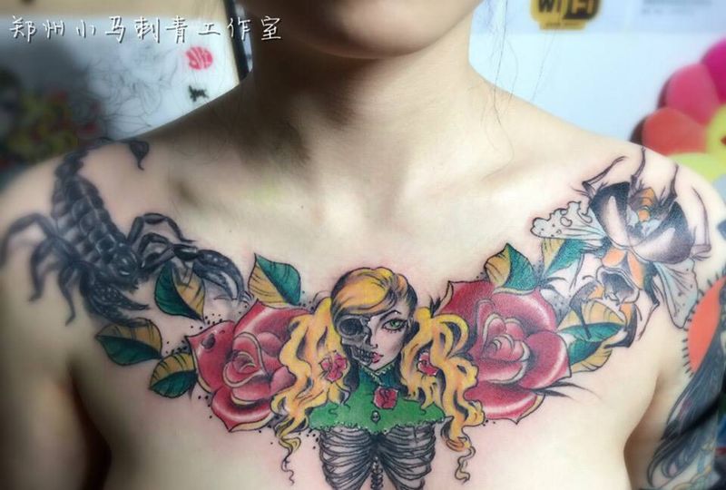 • 女性大花胸纹身_43张霸气漂亮的女性大花胸纹身图案作品
