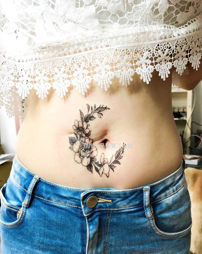 • 时尚性感的腹部莲花纹身图案