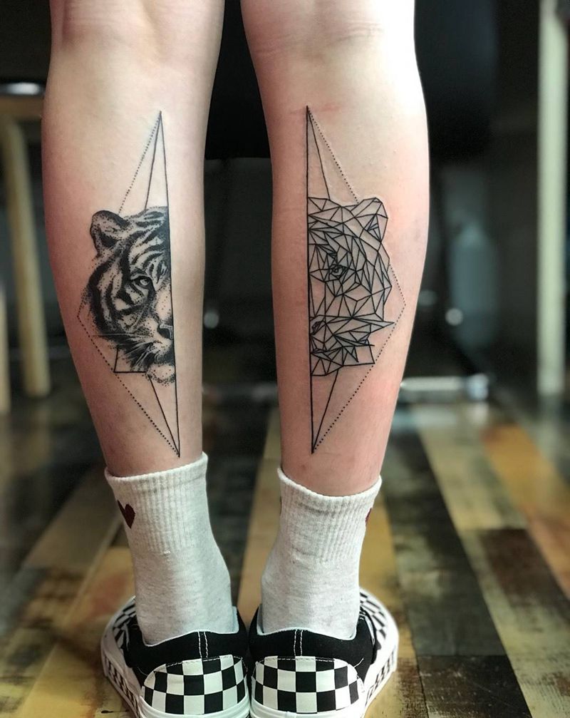 • T网红王老大花腿龙纹身图片_腿部新传统纹身图案