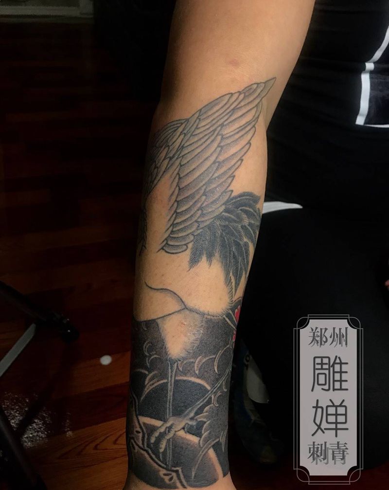 当前位置: 首页 >河南省郑州市纹身店-郑州纹身彫清刺青纹身图案>鹤纹身图片_老传统纹身图案