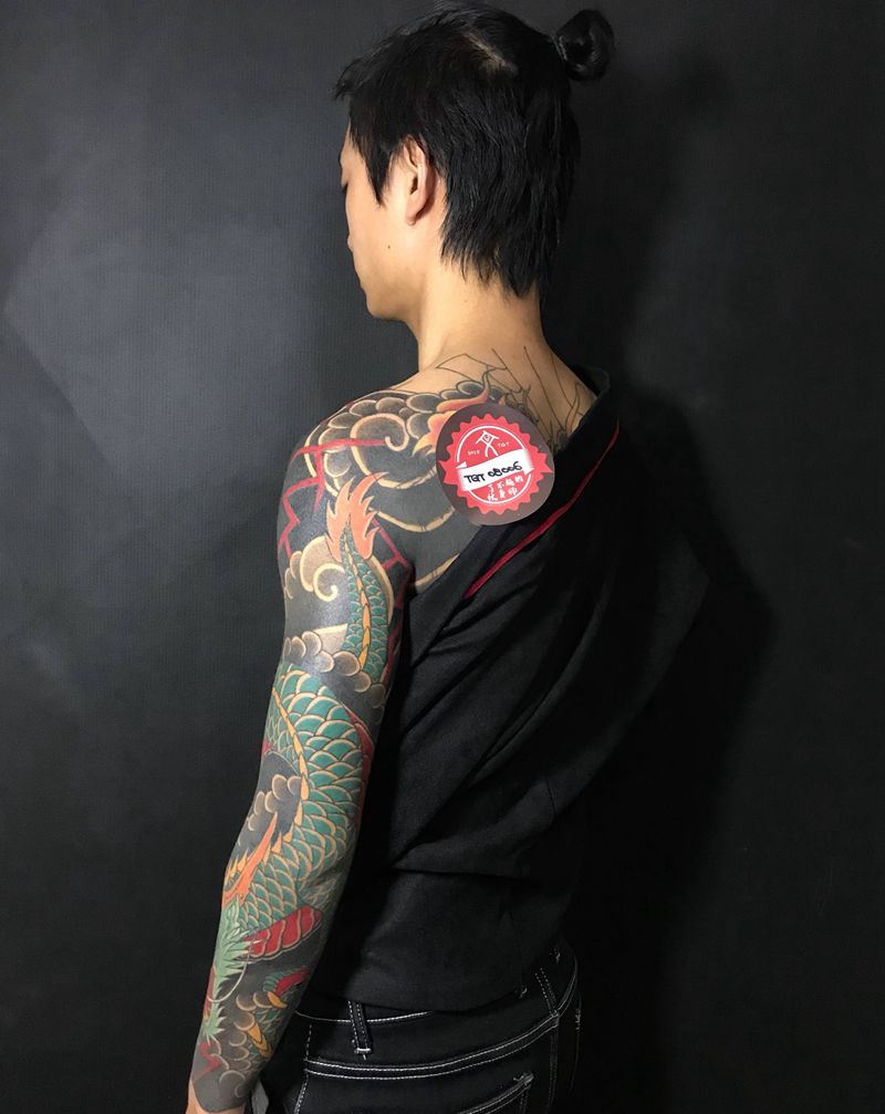 当前位置: 首页 >河南省郑州市纹身店-郑州纹身彫清刺青纹身图案>老传统龙花臂纹身图片_手臂老传统纹身图案