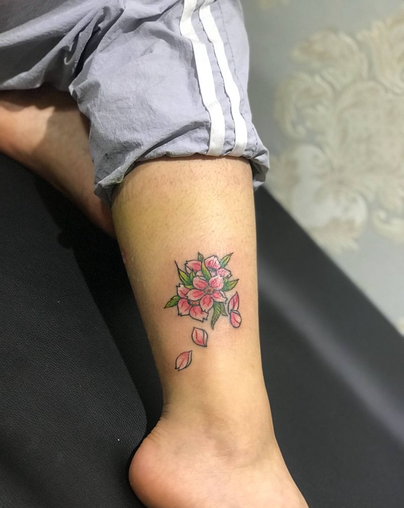 小花花纹身图片_成品腿部脚部清新植物纹身图案