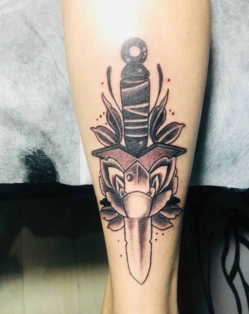 school风格小匕首纹身图片_成品腿部欧美纹身图案