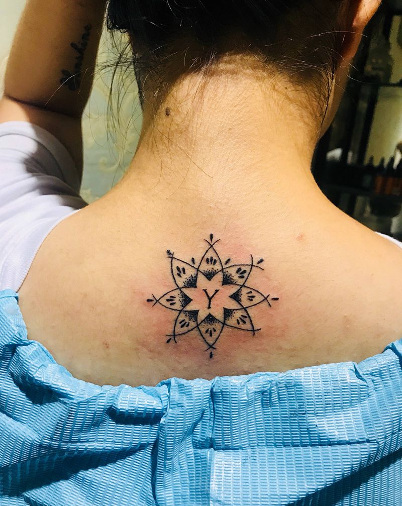 当前位置: 首页 >河南省郑州市纹身店-郑州纹身彫清刺青纹身图案>字母设计纹身图片_成品颈部背部清新几何原创纹身图案