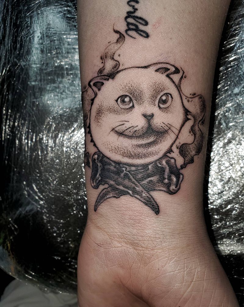 当前位置: 首页 >河南省郑州市纹身店-郑州岁岁刺青纹身图案>猫咪纹身图片_手臂欧美写实遮盖猫暗黑纹身图案