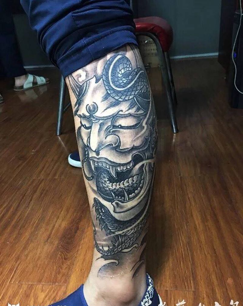 • T网红王老大花腿龙纹身图片_腿部新传统纹身图案
