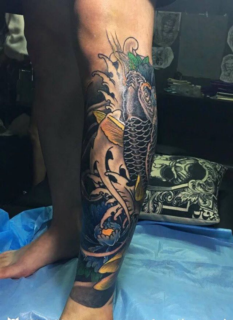 当前位置: 首页 >河南省郑州市纹身店-墨色刺青纹身图案>包小腿鲤鱼纹身图片