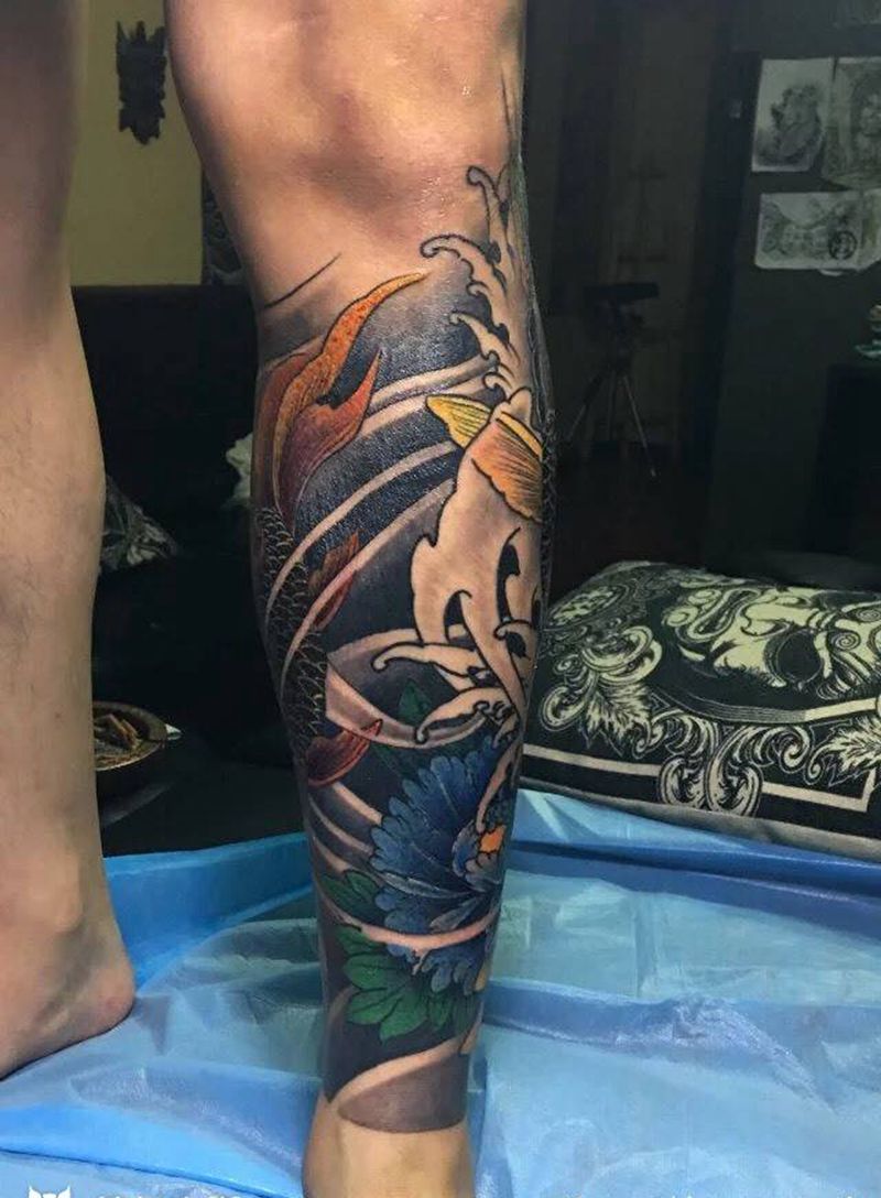 当前位置: 首页 >河南省郑州市纹身店-墨色刺青纹身图案>包小腿鲤鱼纹身图片