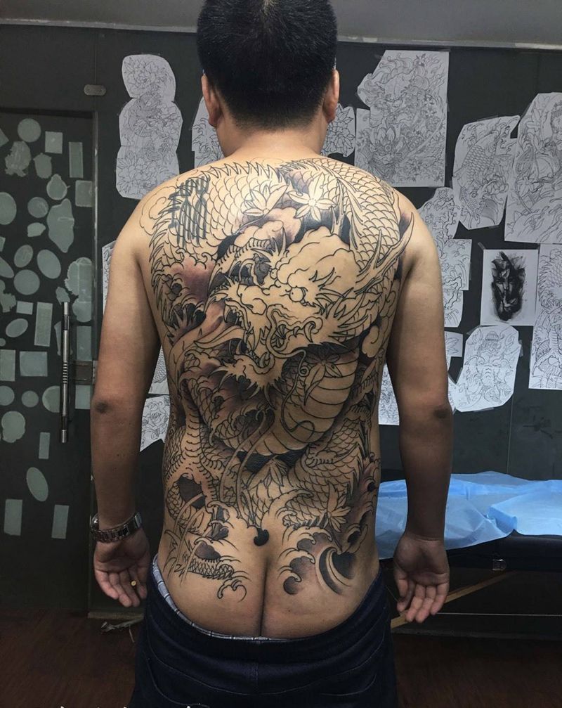 • T云龙九郎纹身图片_背部老传统云龙九郎纹身图案