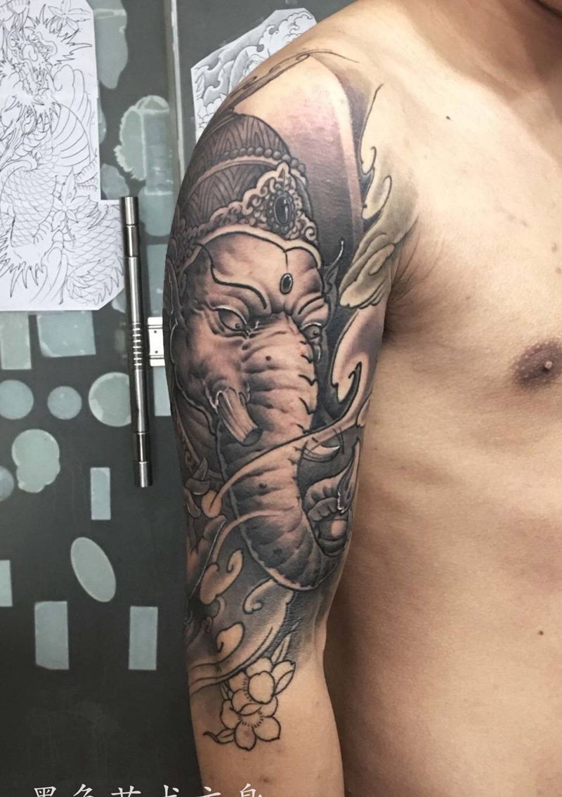 一组15张莲花纹身手