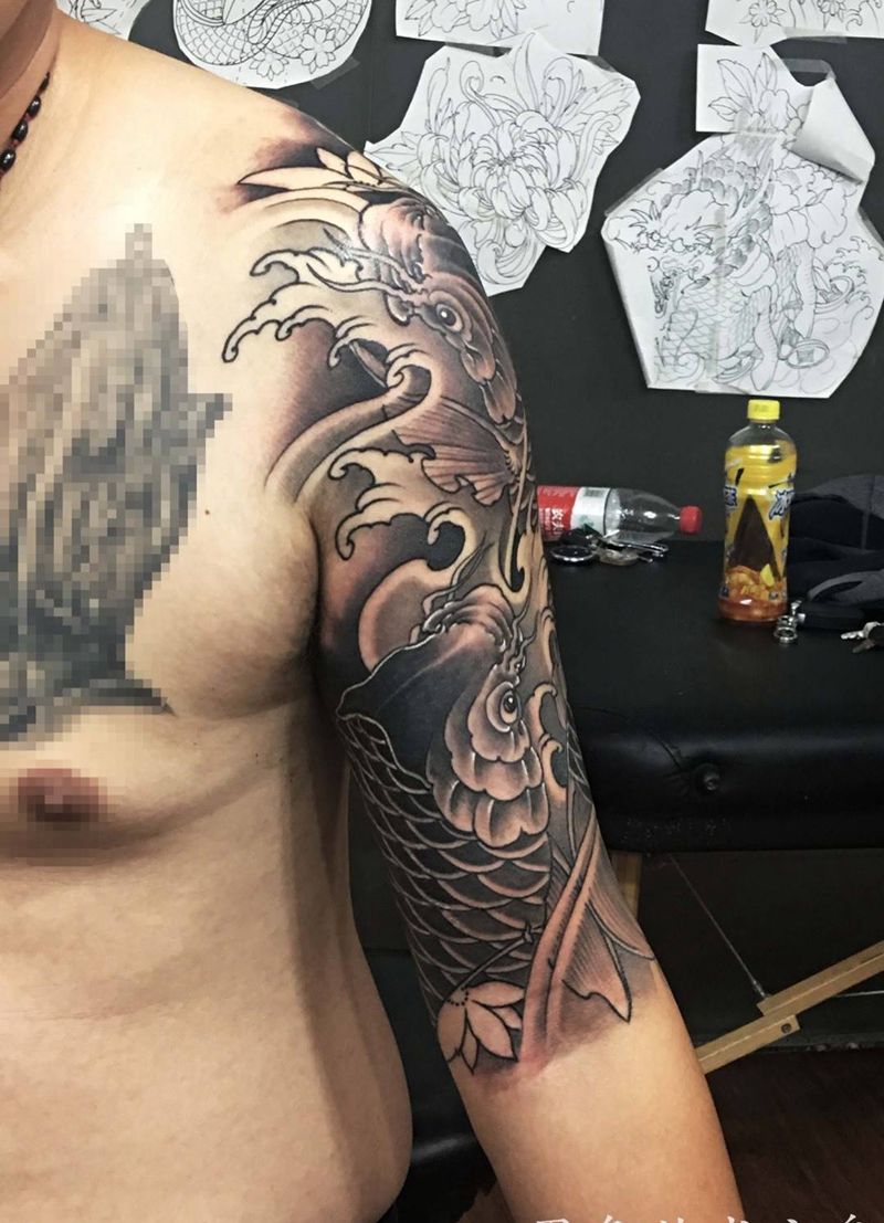 当前位置: 首页 >河南省郑州市纹身店-墨色刺青纹身图案>遮盖鲤鱼纹身图片