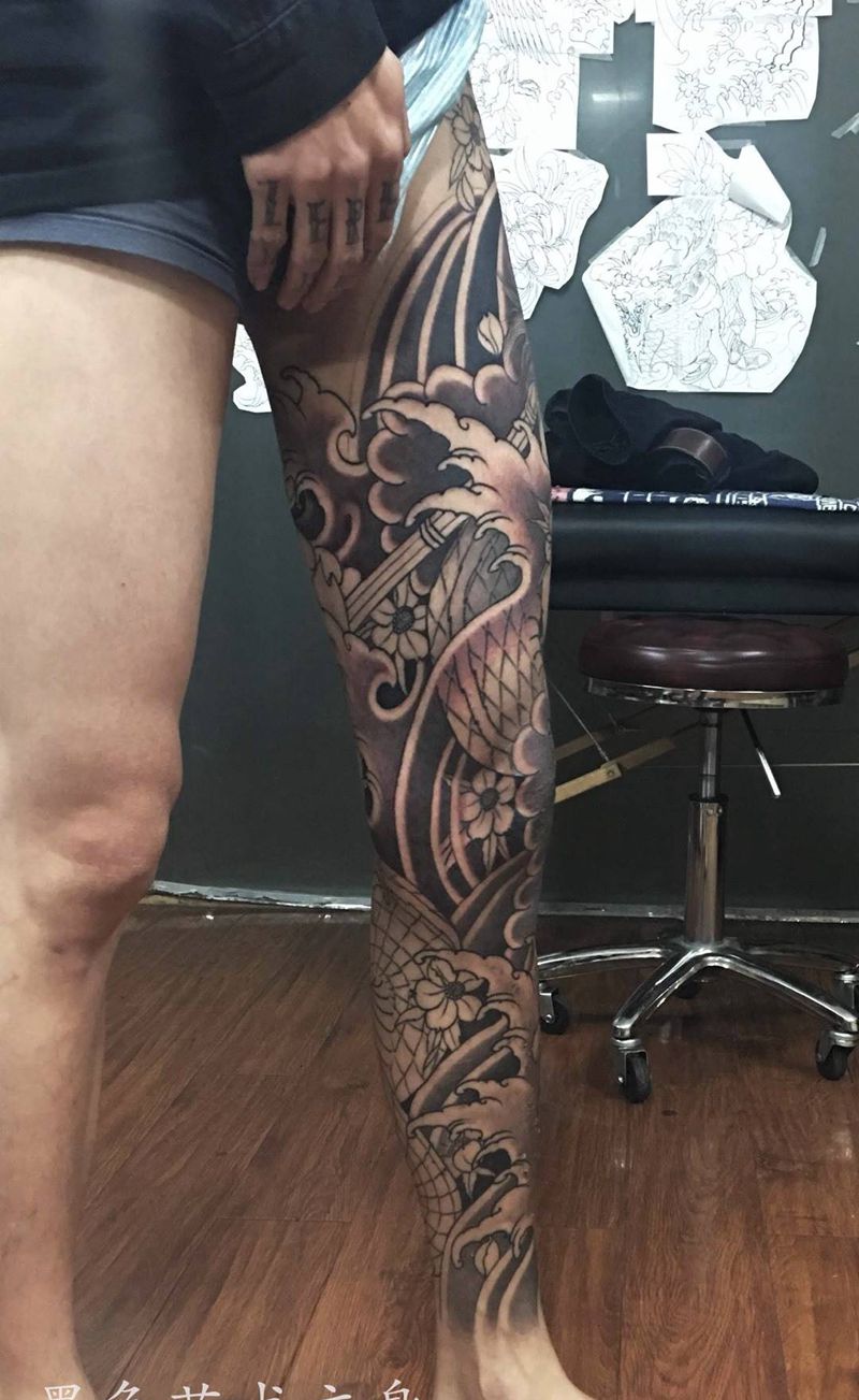 当前位置: 首页 >河南省郑州市纹身店-墨色刺青纹身图案>传统包腿纹身图片