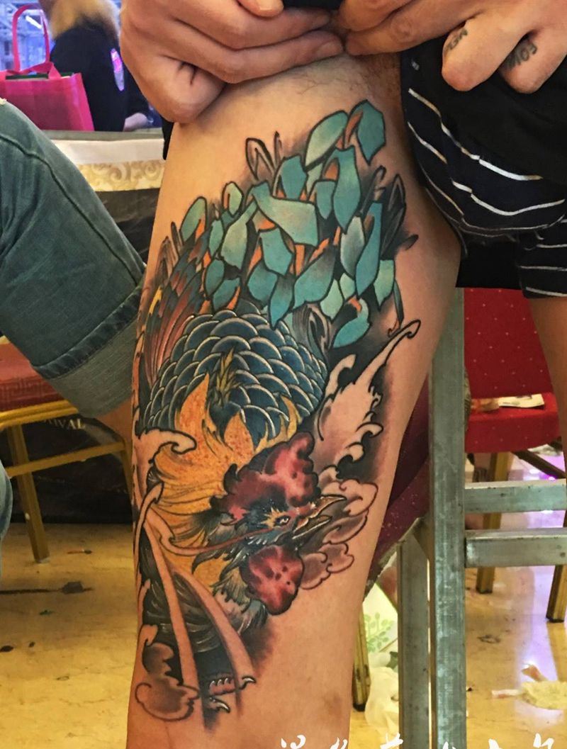 • T网红王老大花腿龙纹身图片_腿部新传统纹身图案
