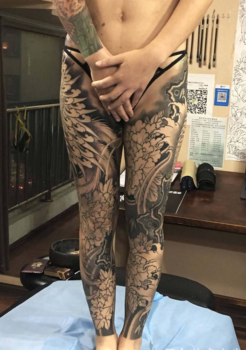 • T网红王老大花腿龙纹身图片_腿部新传统纹身图案