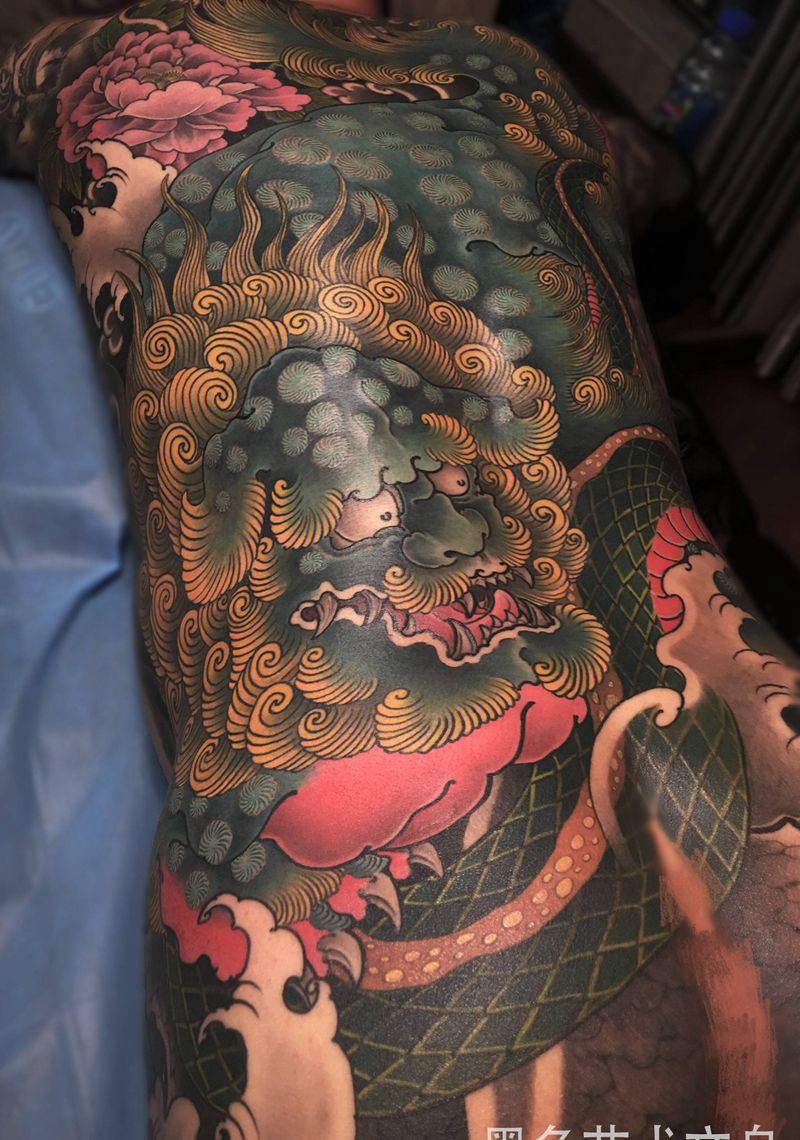 当前位置: 首页 >河南省郑州市纹身店-墨色刺青纹身图案>唐狮纹身图片_臀部背部新传统纹身图案