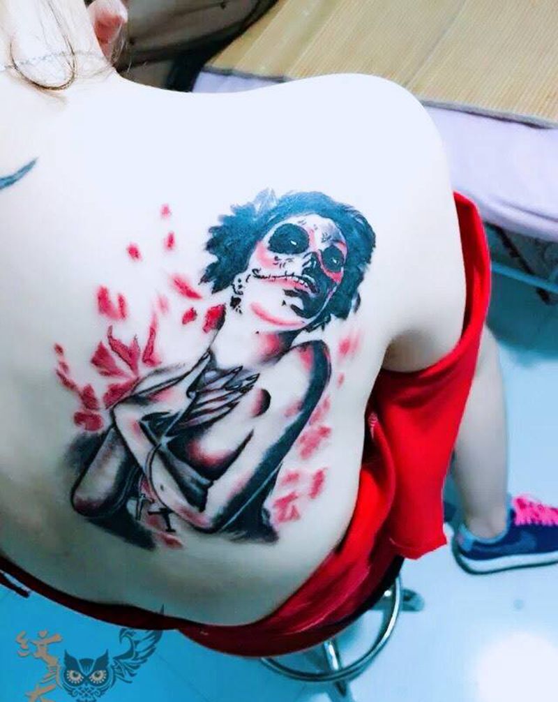 • 黑灰满背纹身图案