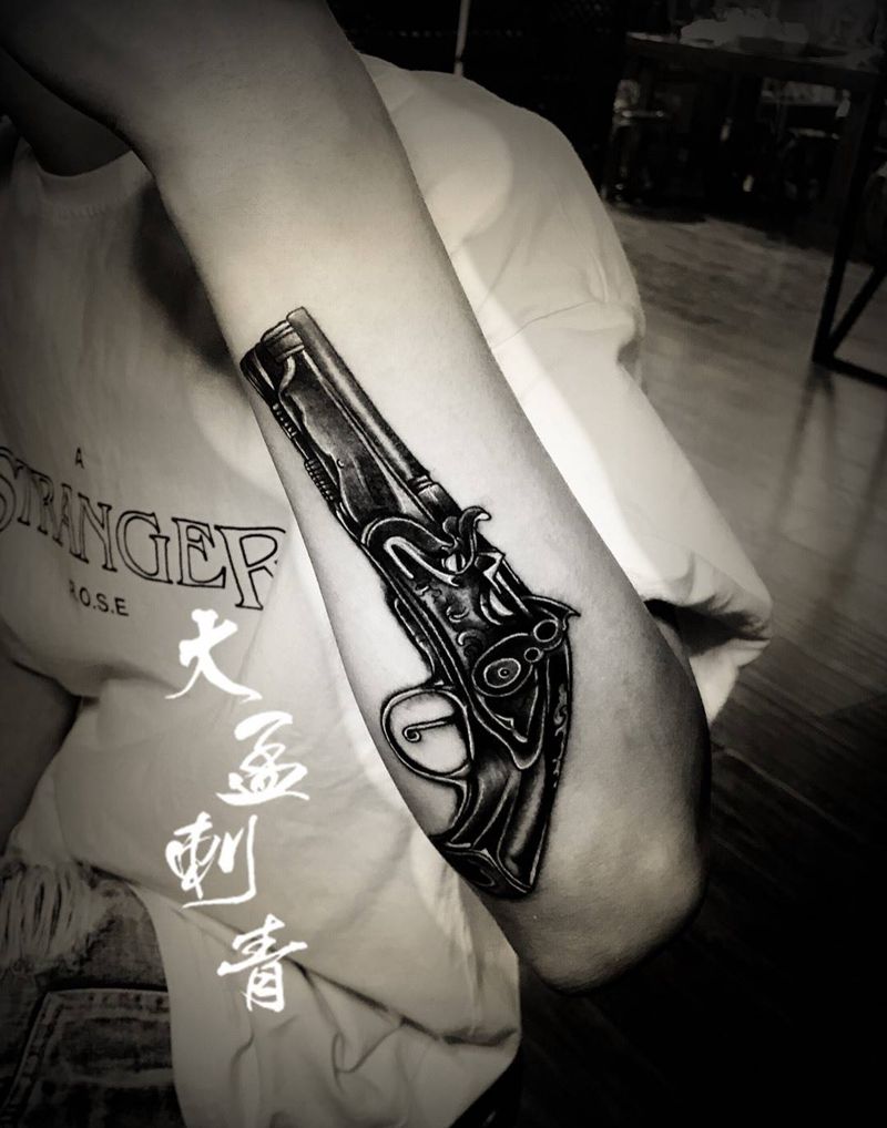当前位置: 首页 >河南省郑州市纹身店-大孟刺青工作室纹身图案>手枪纹身图片_成品纹身图案